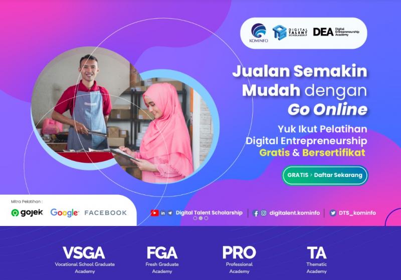 Pada 14 Februari sampai dengan 27 Maret 2021, Badan Penelitian dan Pengembangan SDM Kementerian Kominfo telah membuka kembali pendaftaran program Digital Entrepreneurship Academy (DEA) Program Digital Talent Scholarship 2021.