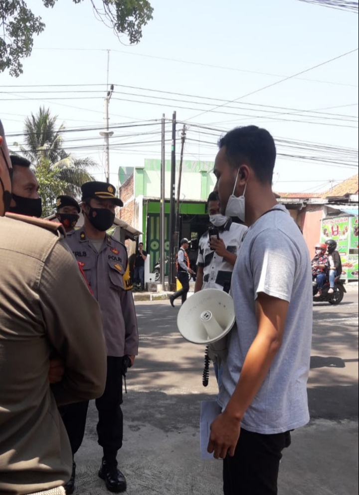 Namun, aksi demonstrasinya harus dihadang oleh aparat keamanan karena tidak sesuai prosedur yang ada. Akibatnya, Mahasiswa bernama Alfi Aulia Hasbullah dibawa ke ruangan Unit 3 Satintelkam Polres Kuningan untuk diperiksa.