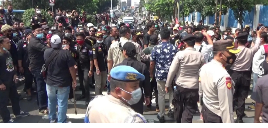 JAKARTA (Bekasi) – Warga dan pengguna jalan yang melintas di Jalan Diponegoro, Tambun Selatan , Kabupaten Bekasi, mengeluhkan aksi berkerumunnya ratusan anggota Organisasi Kemasyarakatan (Ormas), Rabu (02/06) karena menimbulkan kemacetan lalu lintas yang cukup panjang. Seperti dilaporkan mimbar-rakyat.com grup dibetindo.co.
