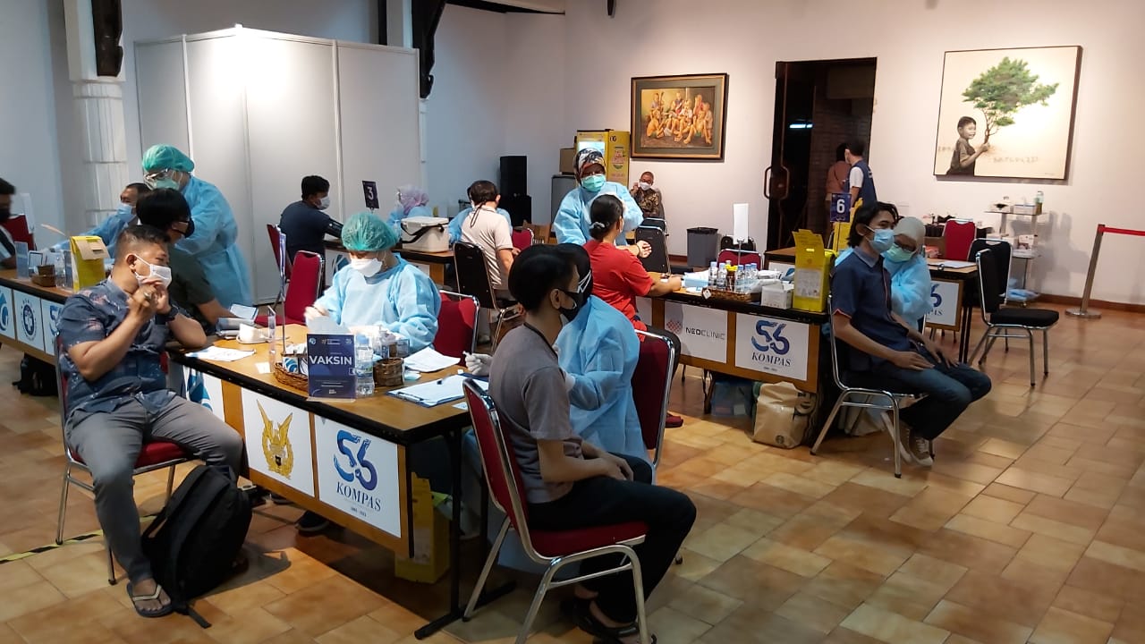 Vaksinasi yg dimulai bertepatan dengan HUT Harian Kompas itu dihadiri oleh Gubernur DKI Jakarta Anies Baswedan. Targetnya 10.000 pekerja media hingga 20 hari ke depan. Sabtu dan Minggu tidak ada vaksinasi.