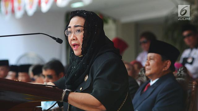 Rachmawati Soekarnoputri saat memberikan pidato kebangsaan saat mengikuti Upacara Peringatan Detik-detik Proklamasi Kemerdekaan ke-73 di UBK.(Foto: merdeka.com/Liputan6.com)