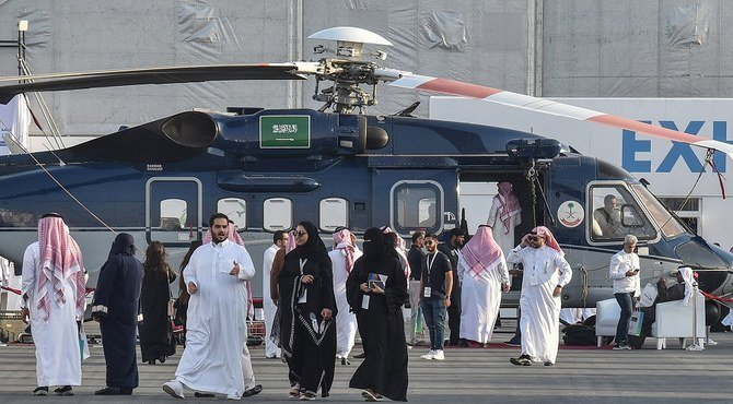Pengunjung menghadiri pameran udara internasional pertama Arab Saudi di Bandara Thumamah, ibu kota Riyadh, 13 Maret 2019. (Foto FileAFP/Arab News)