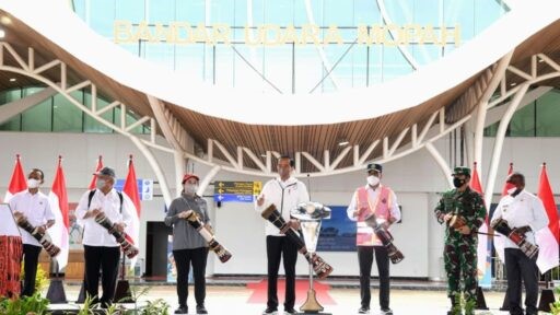 JAKARTA (Merauke) – Presiden Joko Widodo meresmikan terminal baru Bandara Mopah di Kabupaten Merauke, Provinsi Papua, Minggu, 3 Oktober 2021. Pengembangan infrastruktur tersebut akan menghubungkan dan mempersatukan wilayah Indonesia sehingga mobilitas orang, barang, dan jasa menjadi lebih mudah. Seperti dilaporkan mimbar-rakyat.com grup siberindo.co