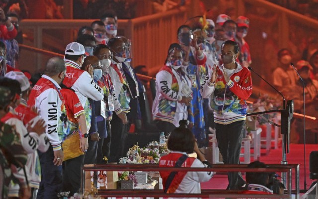 Turut hadir dalam pembukaan PON, antara lain, Ketua MPR Bambang Soesatyo, Ketua DPR Puan Maharani, Ketua DPD La Nyalla Mattalitti, para Menteri Kabinet Indonesia Maju, para duta besar negara sahabat, dan para kepala daerah.  (arl)