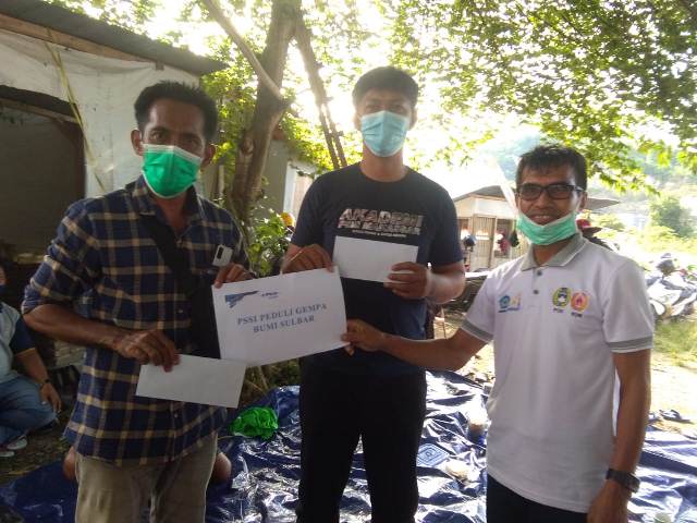 PSSI serahkan sumbangan pada para terdampat korban di Kalimantan dan Sulawesi. (pssi)