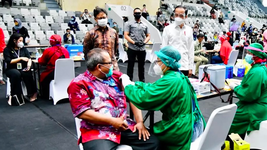 Jakarta – Pelaksaan Vaksinasi di prioritaskan dahulu untuk tenaga kesehatan. Presiden Joko Widodo meninjau pelaksanaan vaksinasi massal yang diperuntukkan bagi para SDM di sektor kesehatan. Vaksinasi massal yang menerapkan protokol kesehatan secara ketat tersebut digelar di Istora Gelora Bung Karno, Jakarta, Kamis (04/02/2021).