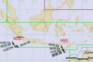 BMKG memprediksi badai Seroja dalam 24 jam ke depan (6/4) pada pukul 01.00 WIB, berada di Samudra Hindia atau sekitar 360 km sebelah barat daya Pulau Rote, pada posisi 11.6 Lintang Selatan, 120.0 Bujur Timur.