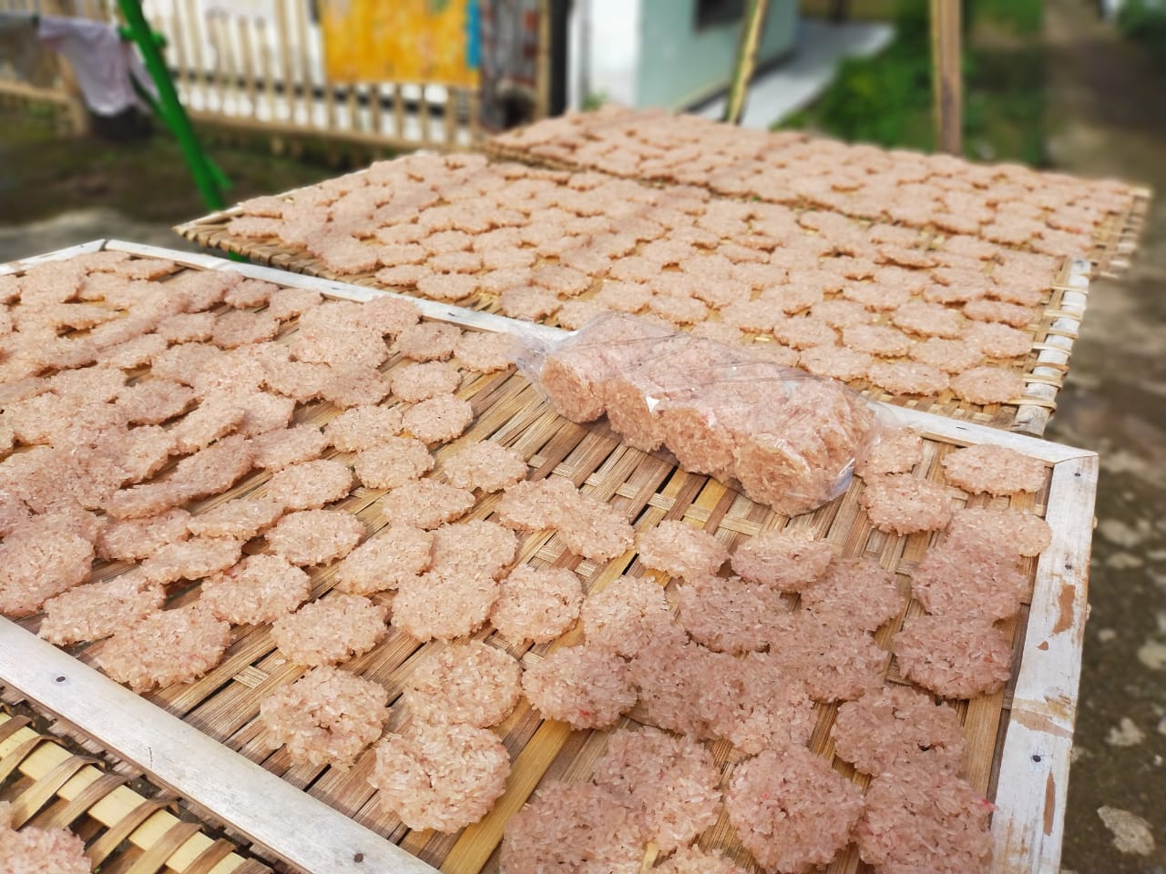 “Setelah matang, dicetak berbentuk bulat dan yang sudah dicetak lalu dijemur di bawah sinar matahari. Jika kondisi panas biasanya dua hari sudah bisa dikemas ke dalam plastik,” katanya.