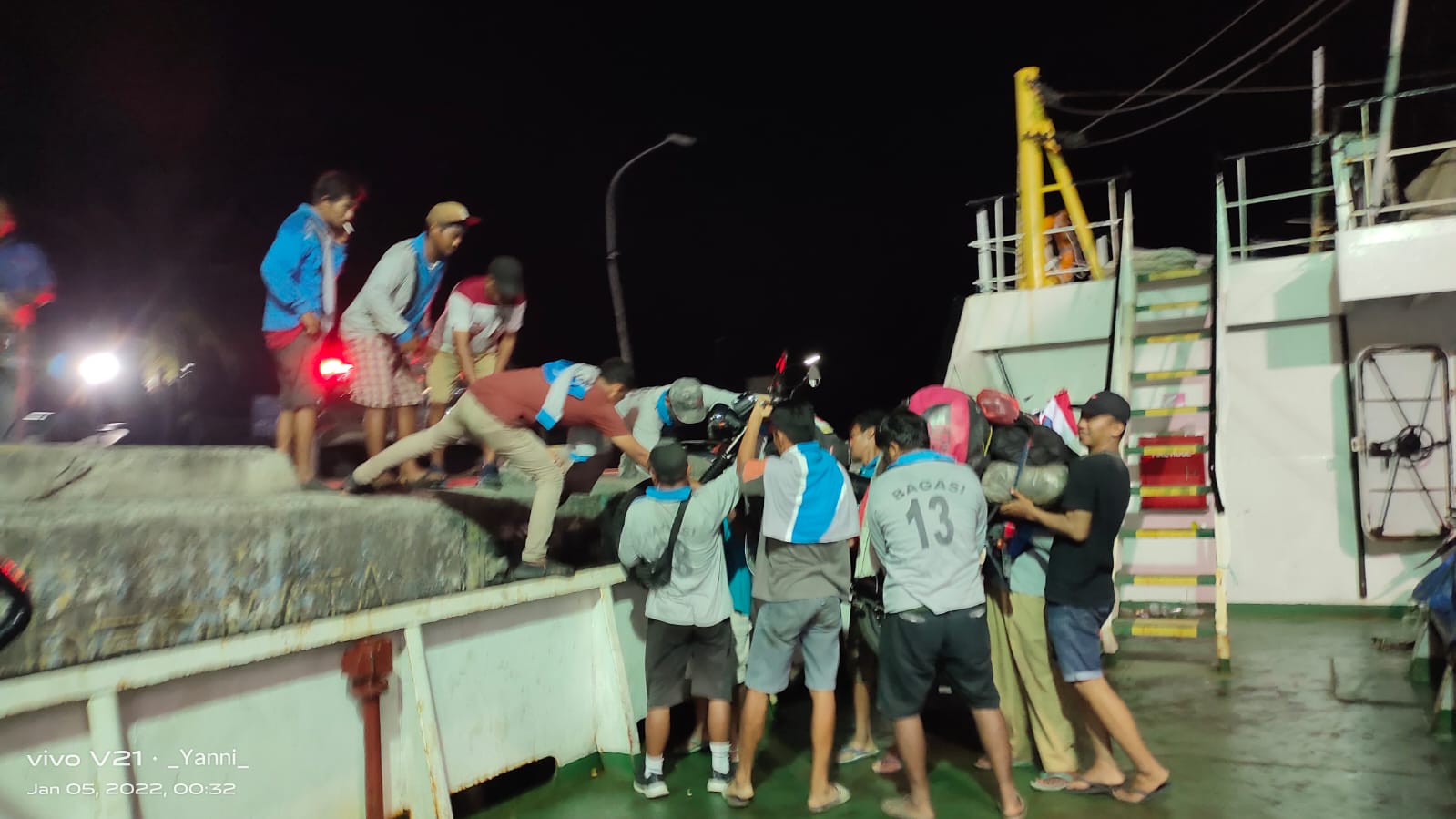 Dalam perjalanan ke pelabuhan, motor KLX 230 yang dikendarai Agus Blues Asianto tiba-tiba terjatuh karena hilang keseimbangan.