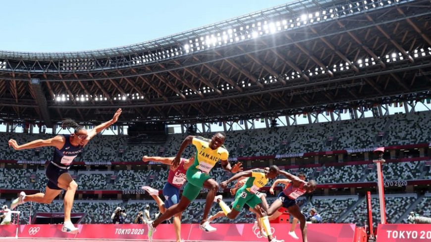 JAKARTA (Tokyo) – Hansle Parchment dari Jamaika finis pertama mengatasi pesaing beratnya Grant Holloway dari Amerika Serikat di final 110m gawang putra, pada hari ketiga belas Olimpiade Tokyo 2020, di Stadion Olimpiade pada 05 Agustus 2021 di Tokyo, Jepang. Seperti dilaporkan mimbar-rakyat.com grup siberindo.co