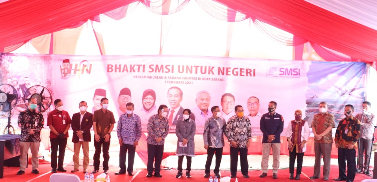 SMSI yang beranggotakan 1.224 perusahaan media siber itu memperingati HPN 2021, salah satunya dengan melakukan kegiatan bakti sosial yang meliputi pembangunan jalan dan sarana sanitasi Mandi Cuci Kakus (MCK) di Kampung Jaha, Desa Pagar Agung, Kecamatan Walantaka, Kota Serang, Banten.