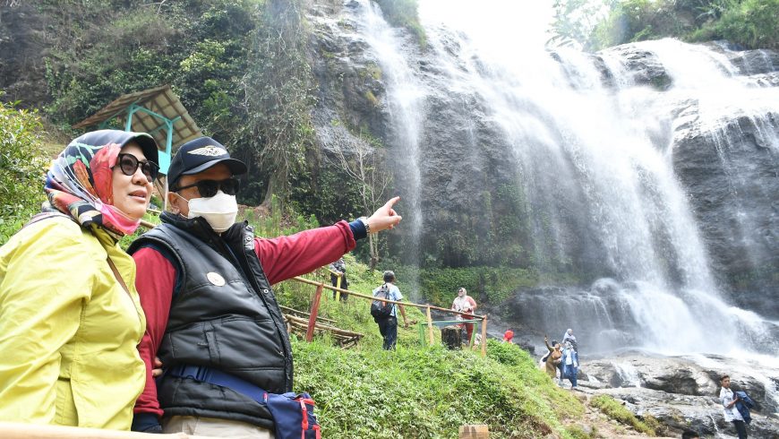 JAKARTA – (Cianjur) Pjs Bupati Cianjur, Dudi Sudradjat Abdurachim mengunjungi air terjun Cikondang di Campaka. Pjs Bupati Cianjur, Dudi Sudradjat mengatakan, Curug Cikondang adalah salah satu dari sekian tempat wisata di Cianjur yang menarik untuk di kunjungi. “Air terjun yang indah dan memiliki ketinggian sekitar lebih dari 40 meter dan lebar 30 meter ini memang sekilas mirip Air Terjun Niagara jika di lihat dari jarak dekat tampak samping atau depan,” paparnya. Seperti dilaporkan mimbar-rakyat.com grub siberindo.co.