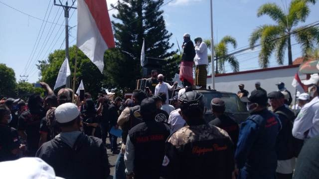 Utusan Ormas dan LSM sebelumnya berkumpul di depan Mesjid Syiarul Islam untuk melakukan audiensi dengan Badan Kehormatan (BK) DPRD Kuningan, menuntut penegakkan kode etik anggota DPRD.