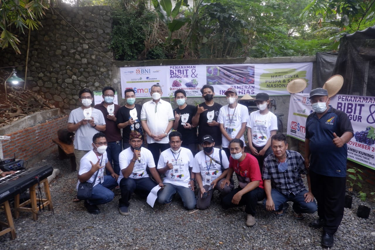 Mimbar-Rakyat.com (Tangsel) – Komunitas Akademisi & Jurnalis – HG Smart Memperingati Hari Cinta Puspa & Satwa Nasional 2021 yang jatuh pada setiap 05 November dengan Mengadakan Penanaman Bibit Pohon Anggur Bersama Benyamin Davnie Walikota Tangerang Selatan dan Pameran Ikan Hias.