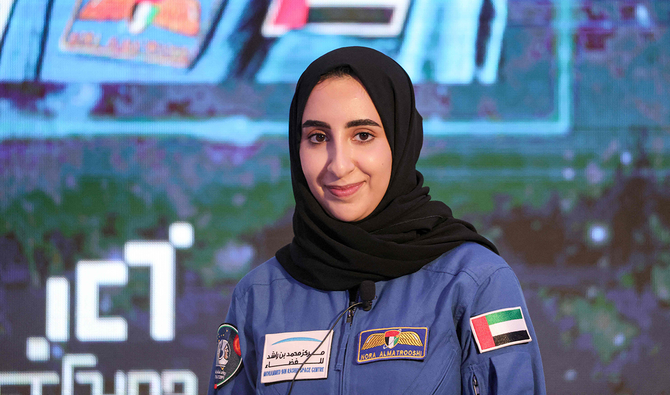 Astronot UEA Nora Al-Matrooshi saat konferensi pers di Dubai pada 7 Juli 2021. (Foto: AFP/Arab News)