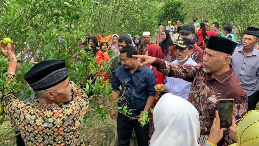 Gubernur Sumatera Barat Buya Mahyeldi saat kunjunga ke beberapa titik sentra perkebunan jeruk di Kec. Gunuang Omeh, Kab. Limapuluh Kota, Minggu (8/5). (Foto: https://sumbarprov.go.id)