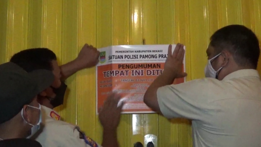 Cafe ini disegel petugas gabungan dari Polsek Cikarang, Koramil 07 Cikarang dan Satpol PP Kabupaten Bekasi.