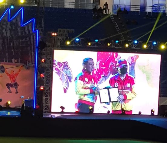 Sam Lantang menerima penghargaan dari Menpora pada Haornas di Balikpapan, Humat malam. (mn)