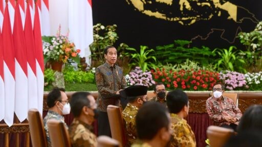 residen Joko Widodo memberikan sambutan pada acara Peringatan Hari HAM Sedunia Tahun 2021, di Istana Negara, Jakarta, Jumat, 10 Desember 2021. (Foto: BPMI Setpres/Muchlis Jr)
