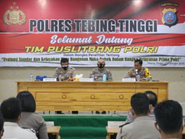Dalam kesempatan ini, Kapolres Tebing Tinggi AKBP Agus Sugiyarso mengucapkan selamat datang kepada tim Puslitbang Polri.