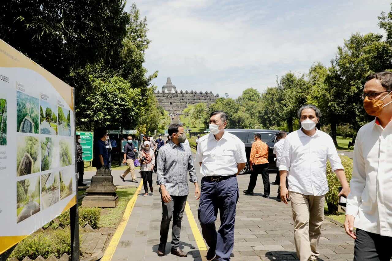 Dalam kunjungan untuk memantau progres pengembangan DPSP Borobudur, Menko Marves didampingi Menteri Pendidikan dan Kebudayaan Nadiem Anwar Makariem, Menteri Pariwisata dan Ekonomi Kreatif Sandiaga Salahuddin Uno, Wamenparekraf Angela Tanoesoedibjo, Gubernur Jawa Tengah Ganjar Pranowo, Direktur Jenderal Cipta Karya Kementerian PUPR Diana Kusumastuti dan Direktur Jenderal Bina Marga Kementerian PUPR Hedy Rahadian. Rombongan meninjau titik pembangunan Lahan Otorita Borobudur mencakup Lapangan Samigaluh, Kampung Seni Borobudur atau Lapangan Kujon, Kembanglimus Community Center, Gerbang Palbapang, Manohara Study Center dan Concourse Candi Borobudur di Magelang, Jawa Tengah.