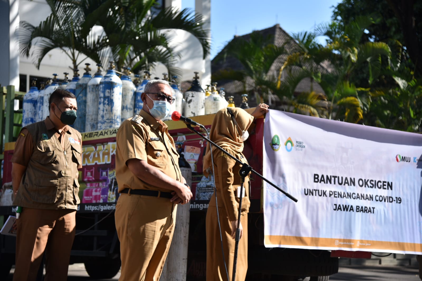 Sekda Kuningan, H Dian Racmat Yanuar, dan Kepala Pelaksana BPBD Kuningan, Indra Bayu Permana, Bupati Acep mengatakan pihaknya mengaku bersyukur atas adanya bantuan tabung oksigen tersebut.