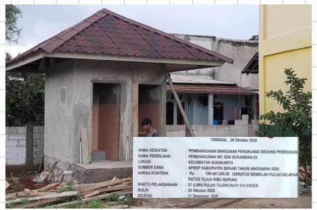 Sementara itu bangunan WC senilai Rp196,8 juta itu, salah satunya ada di SD Negeri Mangunjaya 04, Tambun Selatan.