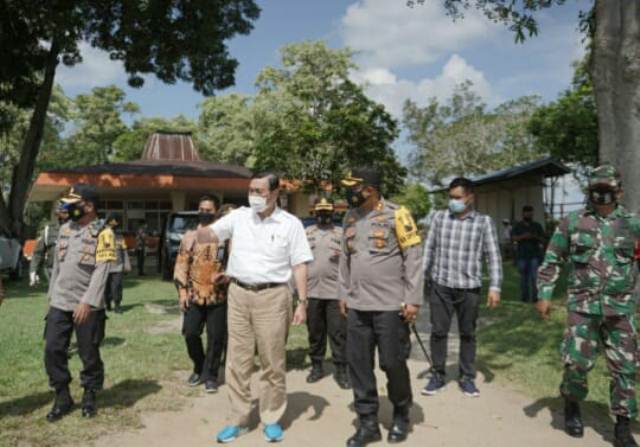 Menko Maritim dan Investasi Luhut Binsar Panjaitan di dampingi Kapolres Tebing Tinggi AKBP Agus Sugiyarso, saat meninjau lokasi proyek tol. (ist)