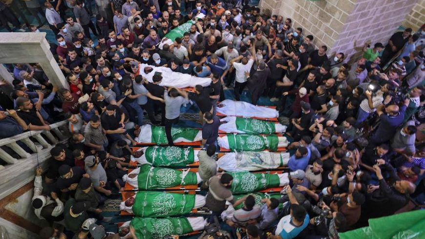 Warga Palestina menandai hari pertama hari raya Idul Fitri pada hari Kamis di bawah pemboman udara tanpa henti. Setidaknya enam warga Israel dan satu warga India juga tewas. Tentara Israel menyatakan ratusan roket telah ditembakkan dari Gaza ke berbagai lokasi di Israel dan mereka telah menambahkan bala bantuan di dekat tanah timur kantong itu.