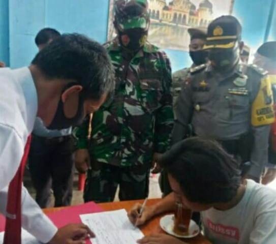 Keterangan foto: Warga yang melanggar Protokol Kesehatan melakukan penandatanganan Bukti Tindakan. (al)