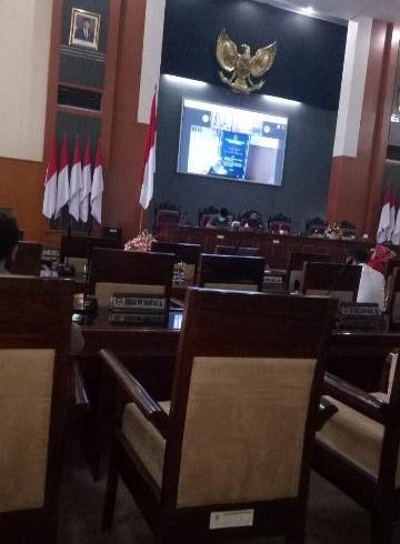 Keterangan gambar – Rapat Paripurna virtual DPRD Kabupaten Kuningan, Senin, membahas APBD 2020. (dien)