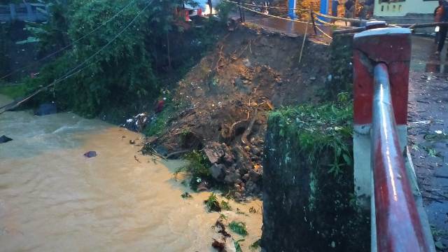 “Karena longsor sebagian badan jalan terbawa amblas. Kami menutup jalan sementara karena kendaraan roda empat tidak bisa melintas,” jelasnya.