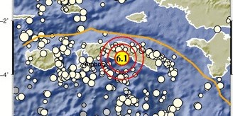 Gempa dengan magnitudo (M)6,1 terjadi pada Rabu siang (16/6), pukul 11.43 WIB di di kepulauan Maluku. ( Foto: BMKG/BNPB)