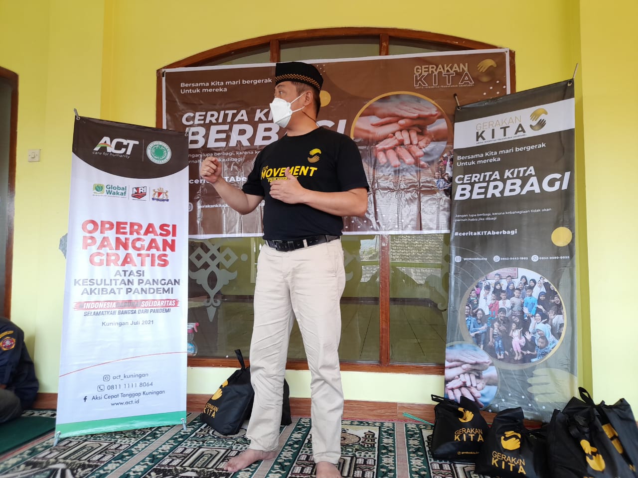Kegiatan yang digagas oleh Gerakan KITA ini juga didukung oleh Aksi Cepat Tanggap (ACT) Kuningan, 234 SC Kuningan, Pemuda Pancasila (PP) dan para donatur lainnya.