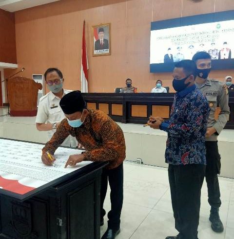 Pada acara tersebut, para calon kepala desa disaksikan unsur Forkopimda (Forum Komunikasi Pimpinan Daerah) Kabupaten Bekasi, menandatangani Deklarasi Pilkades Damai.