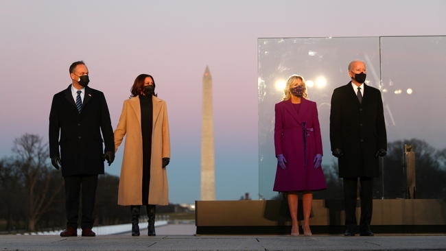 Setelah tiba di Washington, Biden langsung pergi ke upacara malam di Reflecting Pool dekat Lincoln Memorial untuk menghormati korban orang Amerika yang tewas karena Covid-19. Dia bergabung dengan Wakil Presiden terpilih Kamala Harris yang berbicara tentang penderitaan kolektif suatu bangsa.