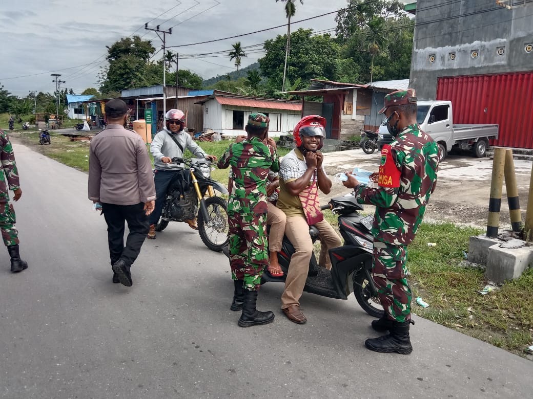 Kegiatan penegakan protokol kesehatan yang dipimpin langsung oleh Danramil 1801-04/Wasior Kapten Inf Katwadi ini masih banyak mendapati warga yangtidak menggunakan masker saat melintas di jalan dengan menggunakan kendaraan roda dua.