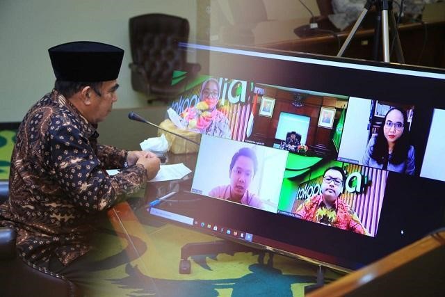 Menag diskusi daring dengan Tokopedia untuk jajaki kerja sama berbagai hal. (kemenag)