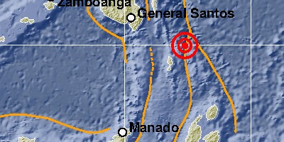 Dilihat dari peta guncangan yang diukur dengan skala MMI atau Modified Mercalli Intensity, gempa dirasakan di daerah Melonguane, Tahuna, Ondong IV MMI, Manado, Bitung III MMI, Galela , Gorontalo, Morotai, Halmahera Utara, Halmahera Barat II-III MMI, Bolaang Uki II MMI, Ternate, Sofifi, Halmahera Tengah I-II MMI.