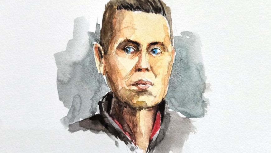 Sketsa ini dibuat pada 21 November 2020, menunjukkan Jonathann Daval yang membunuh istrinya Alexia dan kemudian membakar tubuhnya pada 2017. Dia di vvonis penjara 25 tahun di gedung pengadilan Vesoul, Prancis timur. (Foto AFP/France24)