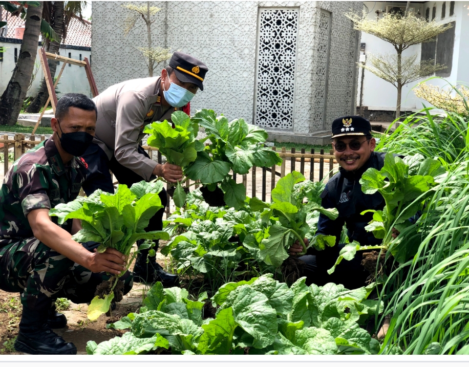 “Hari ini saya bersama dengan Kapolsek dan Danramil Sukatani panen sayur sawi yang pertama kali di kebun belakang Kecamatan Sukatani. Alhamdulillah meskipun hasil panennya tidak terlalu banyak, kita tetap akan bagikan ke masyarakat sekitar, karena kebun ini milik kita bersama,” ujar Imam.