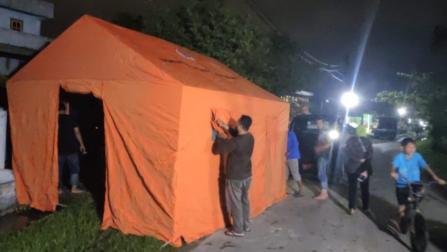 BPBD Kota Tebing Tinggi bersama tim gabungan membangun tenda untuk pelayanan kebutuhan warga terdampak Banjir di Kota Tebing Tinggi, Provinsi Sumatera Utara. (Foto: BPBD Kota Tebing Tinggi)