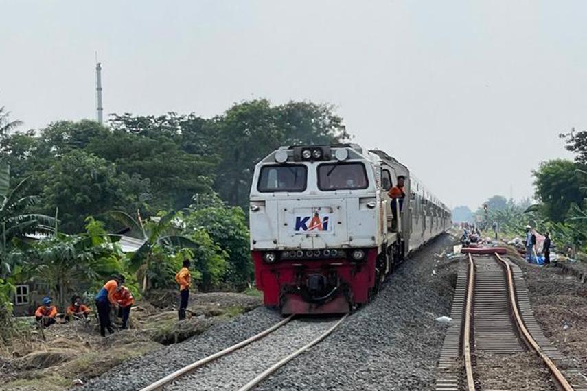 JAKARTA – Jalur hilir kereta api antara Stasiun Kedunggedeh – Stasiun Lemahabang, Kab. Bekasi, sudah dapat dilewati oleh semua kereta api setelah sebelumnya tergerus oleh banjir. Selasa, (23/2/2021).