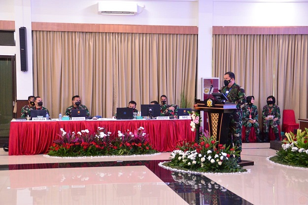Panglima Komando Pertahanan Udara Nasional (Pangkohanudnas) Marsda TNI M. Khairil Lubis, membuka sekaligus menutup Rapat Kerja Kohanudnas (Raker) tahun 2021 di Gedung Leo Wattimena, Halim Perdanakusuma, Jakarta Timur, Senin (22/2). Raker Kohanudnas diikuti oleh Kaskohanudnas Marsma TNI I Wayan Sulaba., S.Sos., M.Sc, Pangkosekhanudnas I,II, III, IV, Danpusdiklathanudnas, Kapuspotdirgaau, Pejabat Kohanudnas, Paban II Spotdirgaau, Perwakilan dari Seskoau, Para Komandan Satuan Radar (Satrad), Dansatrudal 111, serta siswa operator PTTA A-3 Skadik 104 Lanud Adisutjipto.