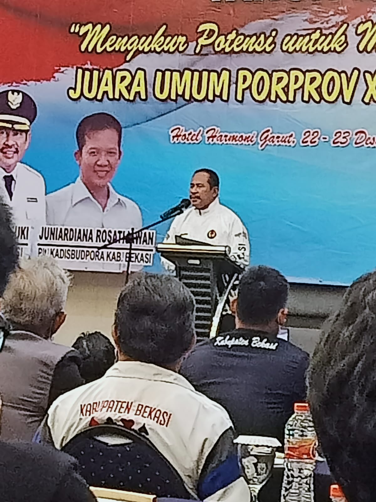 “Saya datang kemari mengajak Ketua Bappeda dan juga bersama mentor saya Pak Nyumarno dari Komisi II DPRD Kabupaten Bekasi sebagai bentuk dukungan kami kepada KONI,” lanjut Bupati.