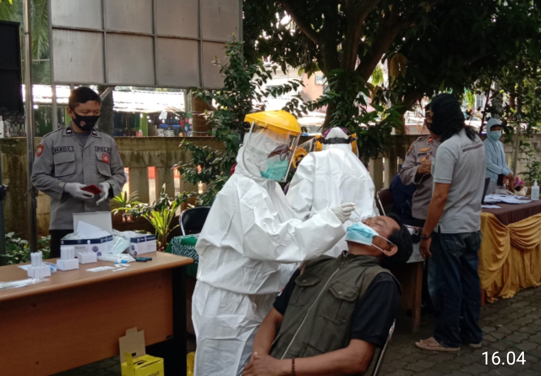 JALARTA (Bekasi)- Polsek Cikarang Utara dibantu oleh Muspika Kecamatan Cikarang Utara dan Puskesmas Cikarang yang tergabung dalam tiga Pilar melakukan Swab Test Antigen gratis ke warga yang menggunakan kereta api Comuter line, Senin (24/5/2021). Seperti dilaporkan mimbar-rakyat.com grup siberindo.co.