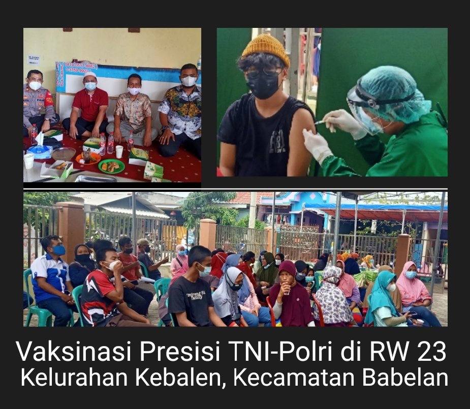 Vaksinasi yang dipandu langsung Ketua RW 23 Kelurahan Kebalen, Tasmiun, SH , MM dan dipantau langsung Wakapolsek Babelan AKP Saiful Anwar , Lurah Kebalen Firman Arief Sembada , Binmaspol Aiptu Mizlan dan Babinsa AD Peltu H Niman .( agus)