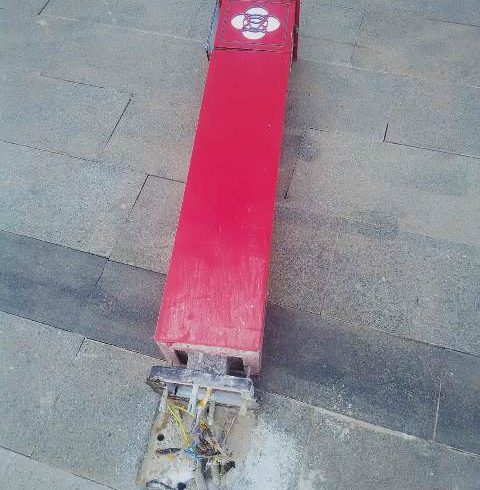 Tiang hiasan ini bocor dan mengeluarkan strum, membahayakan pengunjung. (dien)