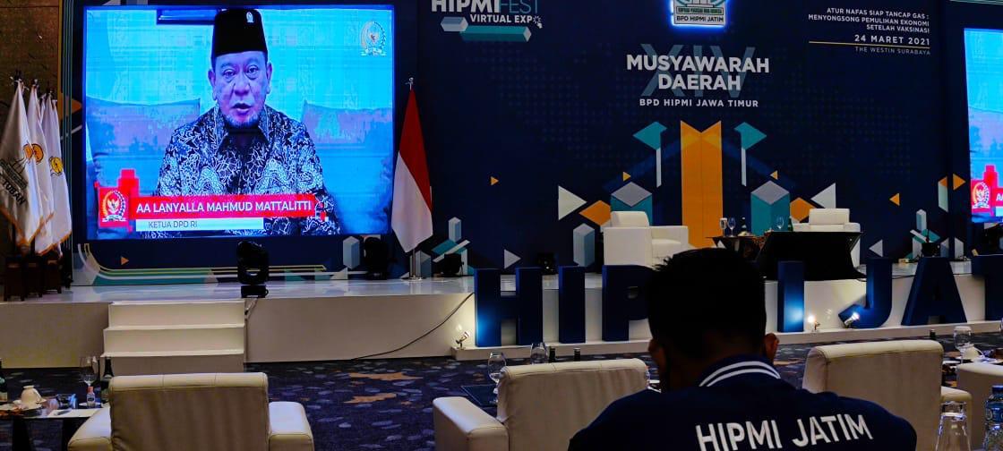 Hal tersebut disampaikan saat menjadi pembicara utama secara virtual, dalam Musyawarah Daerah ke-XIV BPD Himpunan Pengusaha Muda Indonesia (HIPMI) Jawa Timur dengan tema; ‘Mengakselerasi Pemulihan Ekonomi Daerah di Masa Pandemi Covid-19’, Rabu (24/3/2021).