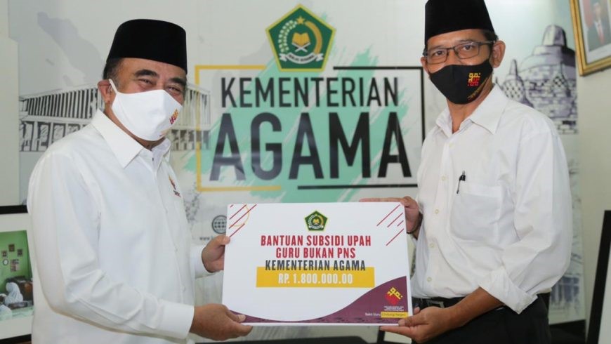 JAKARTA – Menteri Agama (Menag) Fachrul Razi menyerahkan Bantuan Subsidi Upah Guru Bukan PNS secara simbolis kepada lima orang perwakilan, masing-masing sebesar 1,8 juta rupiah. Di masa pandemi ini, menurut Menag, guru memiliki peran besar untuk menjaga keberlangsungan bangsa. Ia pun mengapresiasi para guru yang telah berdedikasi tanpa henti selama pandemi Covid-19. Seperti dilaporkan mimbar-rakyat.com grup siberindo.co